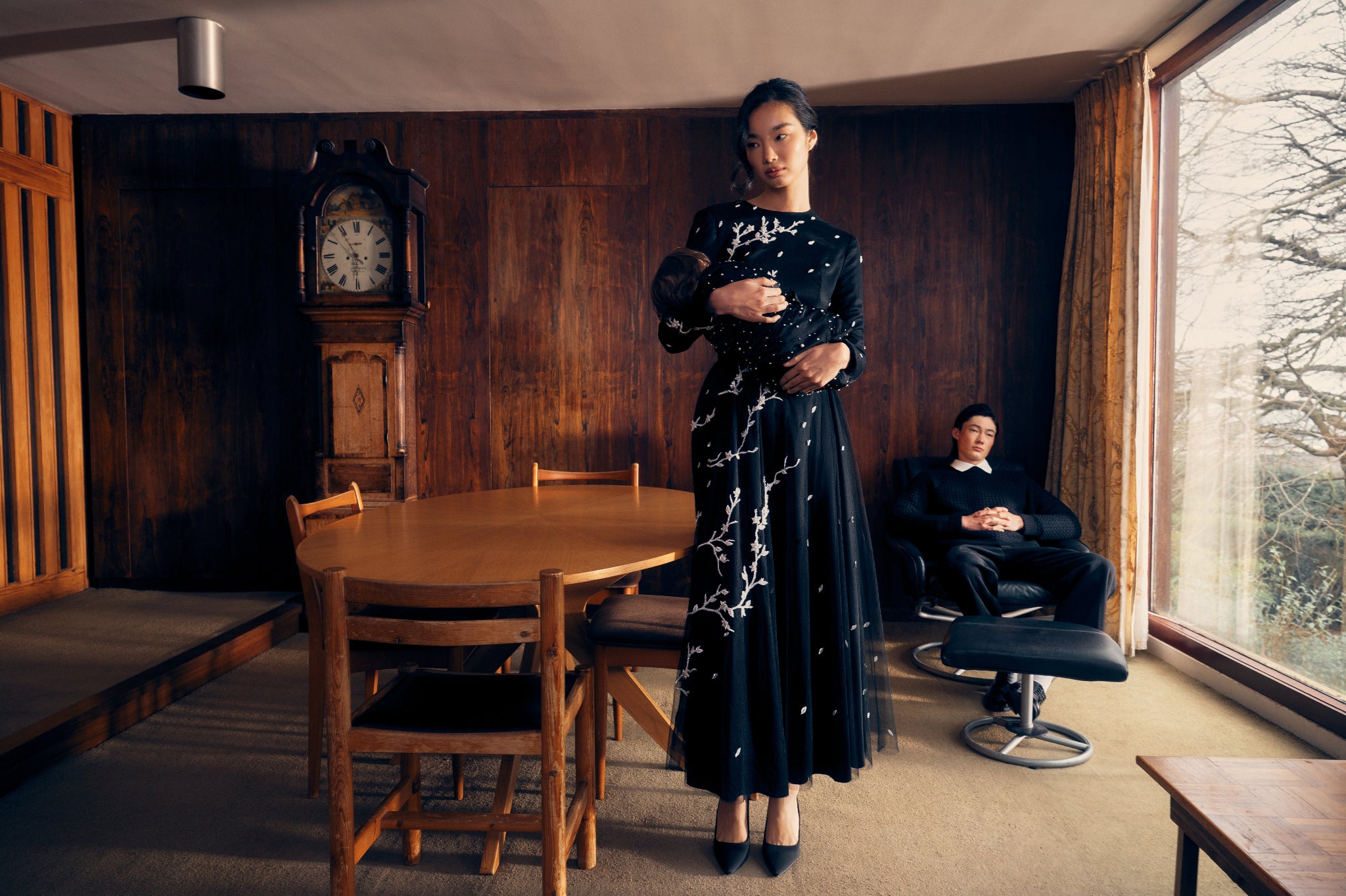 A sculpted gown crafted in fluid black satin. Featuring a sweetheart neckline, lace-up inner corset, and softly ruched detail, the Butterfly Gown is designed to contour the figure while offering effortless movement. A timeless silhouette with a touch of quiet drama.